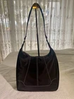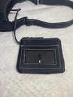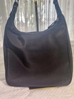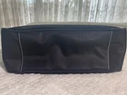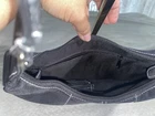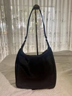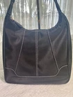 Item is unbranded. It is a minimalist style, featuring a black nylon bag with white stitching and a shoulder straps. It has a zippered closure and an interior zippered compartment. A small I.D. / credit card pouch is attached, which has an I.D. compartment, 3 credit card slots and a zippered closure. This bag makes for a professional accessory for business or work wear. Hobo bag: 1) Height: 8.5 in, 2) Width: 11 in, 3) Depth: 4.25 in, 4) Strap drop: 12 in Attached I.D. / credit card pouch: 1) Height: 4 in, 2) Width: 4.7 in, 3) Depth: 0.75 in All measurements are best approximations. Please view all photos, as they are part of the listing's description of the item. Vintage and unused. No flaws observed. Silver-tone hardware looks shiny and new. Item is clean, inside and out. From a smoke-free / pet free home. No odor. Please see all photos. DISCLAIMER: All photographs provided do not use filters with any intent to alter or improve the appearance or condition of the item. All items are inspected carefully and flaws are photographed and presented as transparently as possible to The Buyer. All measurements provided are done to the best of the ability by The Seller. If you have any further questions pertaining to the description of this item, please contact The Seller BEFORE purchasing or placing an offer.