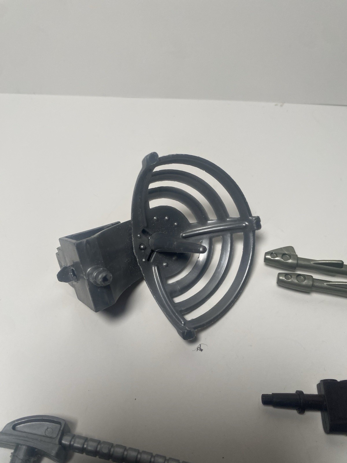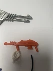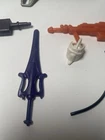 This vintage lot of action figure accessories includes items from popular franchises such as He-Man, G.I. Joe, and more. The accessories included in the lot consist of a sword, Ray gun, satellite.