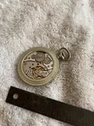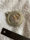 This neat old pocket watch is running as I write. The crystal is showing some scratching. The dial measures about 1 3/4 inches in diameter. Please see the pictures posted and my store for many more great items.