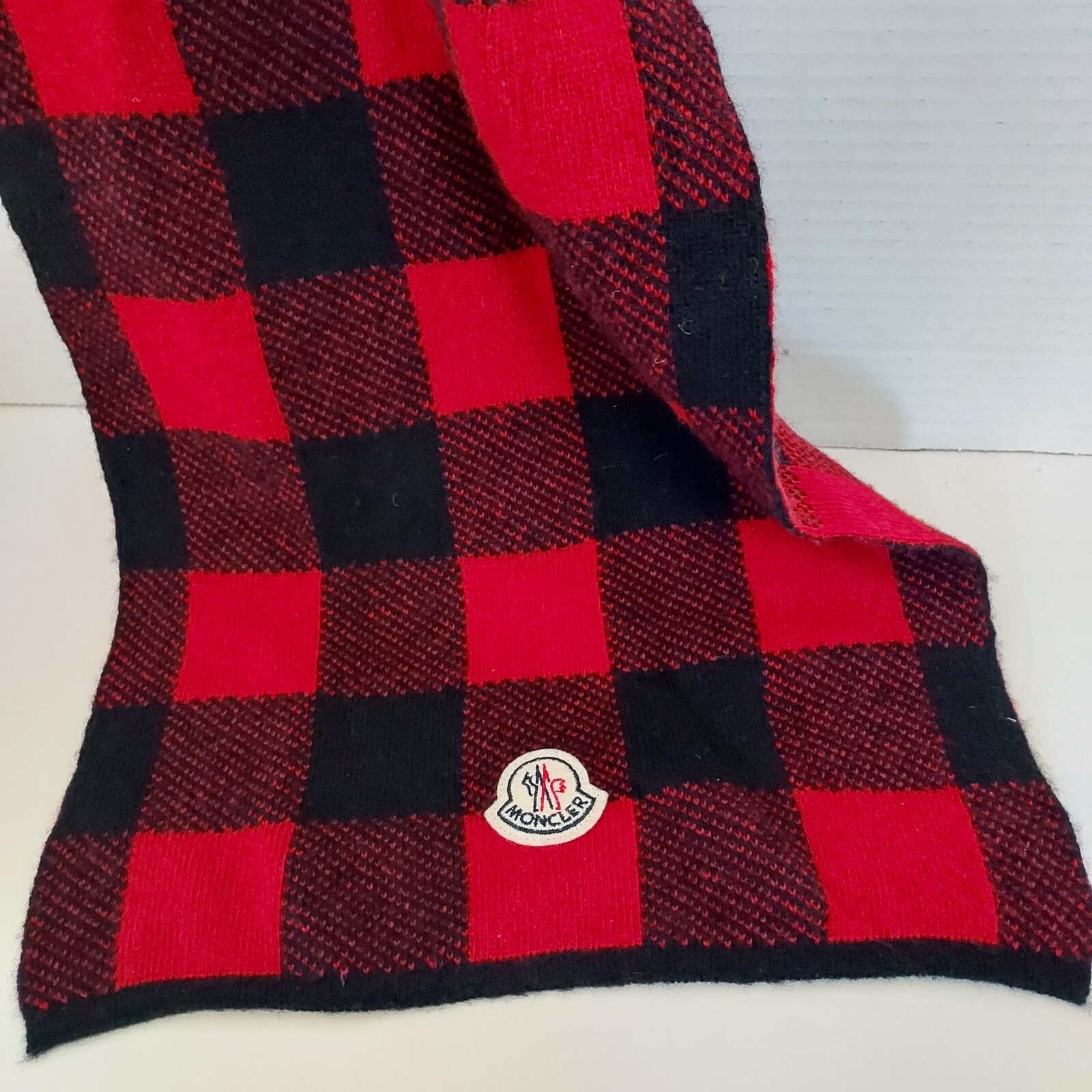 Beautiful vibrant plaid reflecting the quality of Moncler outerwear. It is a long scarf. It is 12 inches wide and 78 inches long. The scarf is in good vintage condition with no rips , stains, or holes. The last photo shows where the fabric content tag was removed. I can't be sure, but the scarf looks and feels like fine wool.