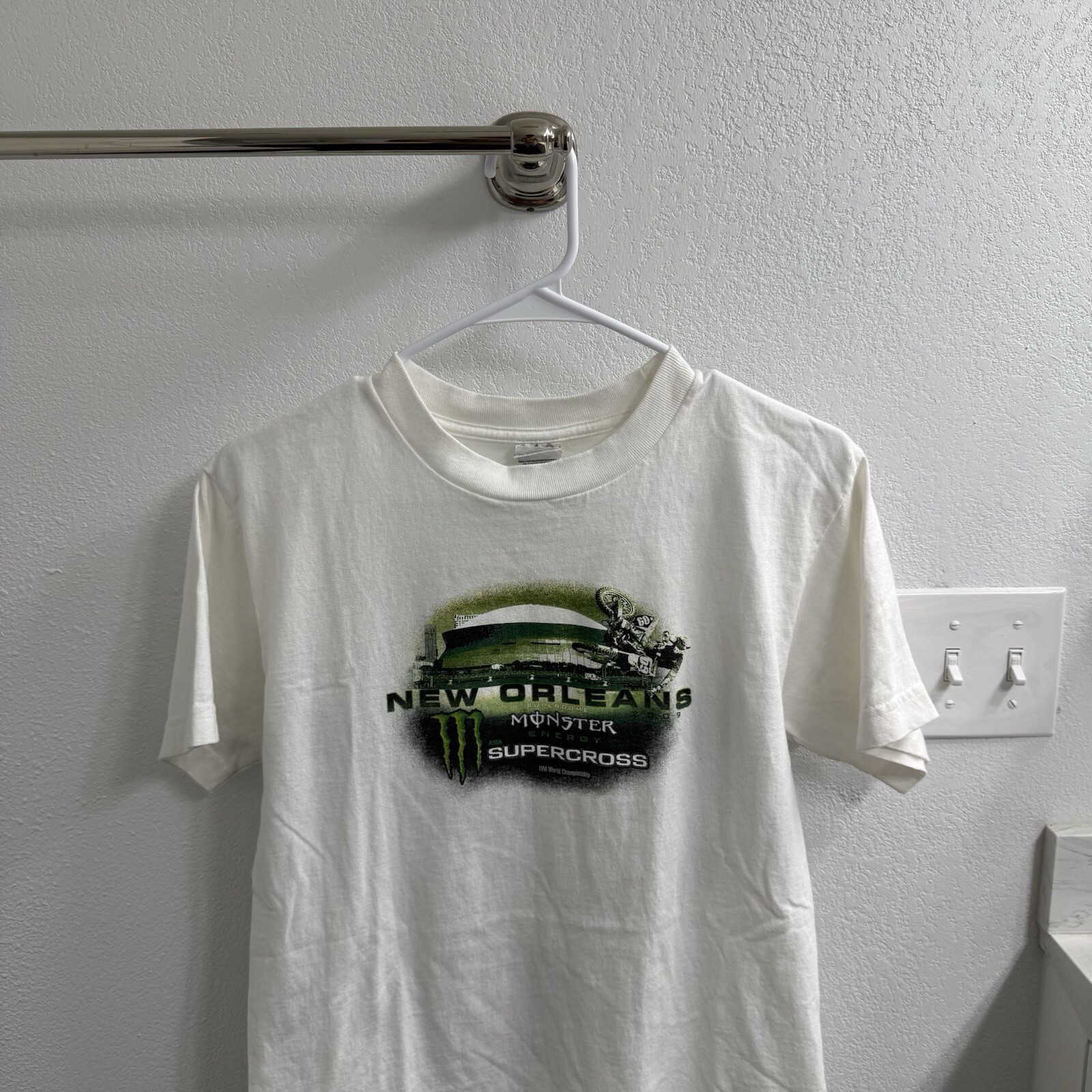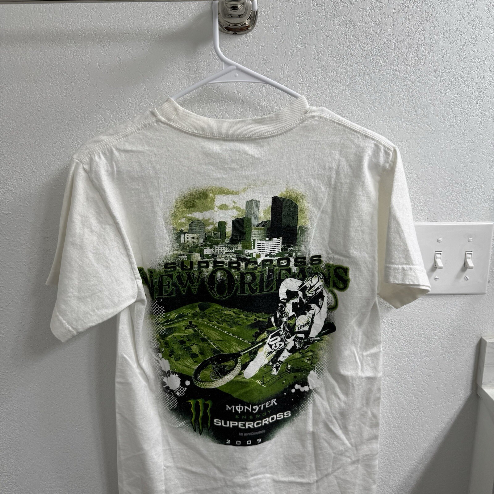 This vintage Monster Energy tee is a must-have for motocross and skate fans! The bold graphic print with a biker and gothic details gives major Y2K vibes. The black color and regular fit make it super versatile—throw it on for a casual, edgy look. Love the retro 2009 energy, and the quality still holds up. Perfect for anyone who loves action sports or just wants a cool throwback piece.