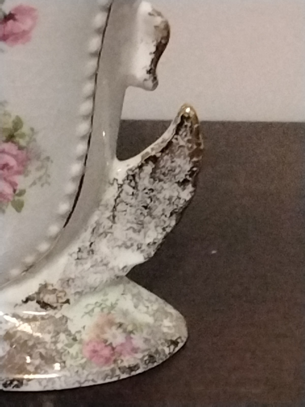 Vintage MOSS ROSE French Wedding Pedestal VASE with GOLD Trim