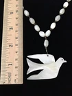 Pendant Shape:DoveMain Stone:Mother of PearlMaterial:ShellSeller Notes:“Collector's Alert - Great Vintage Condition”Main Stone Color:IvoryBrand:UnbrandedChain Type:Mother of Pearl BeadDepartment:WomenClosure:Spring RingMetal:Stainless SteelType:NecklaceCountry of Origin:UnknownJewelry Department:FineModified Item:NoOriginal/Reproduction:OriginalVintage:YesNecklace Length:24 inStyle:PendantSigned:No