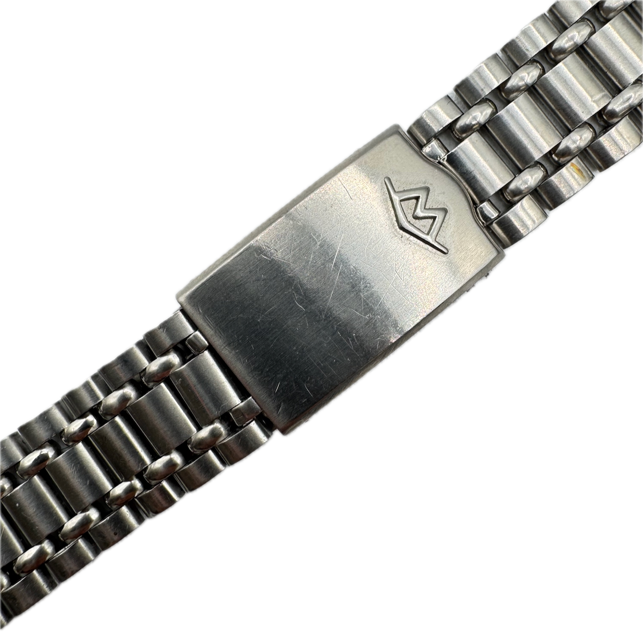 Vintage 9mm Movado Men's Wristwatch Bracelet Stainless Steel Datron Swiss Product Description Item: Wristwatch Bracelet Brand: Movado Model: Datron Case Material: Stainless Steel Country: Swiss Gender: Men's Size: 9mm Product Measurements Length: 6in Band Width: 17mm Clasp Width: 17mm Endlink Width: 9mm Product Condition Overall Condition: Fair, overall condition for its age. Additional Information: It is missing both endlinks.