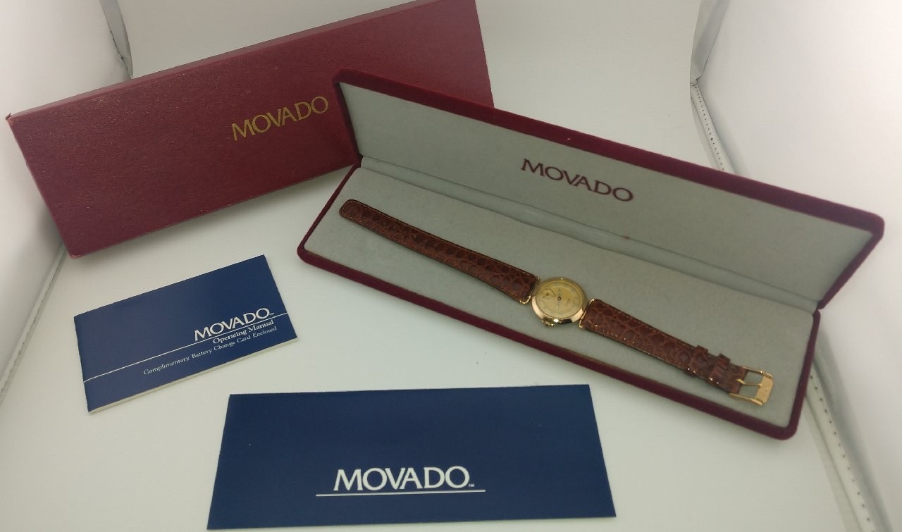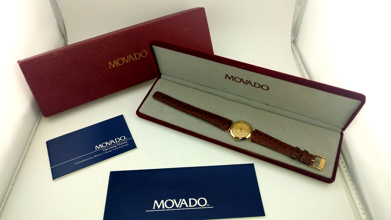 grandpa don’s mostly movados Make/Model/Serial Number: Vintage Movado Ladies Gold Plated Roman Numerals, New LeatherBand/ Model: #82.08.820/Serial #: 3029XX Description: This Vintage Movado Women's Gold Plated Watch is a luxurious timepiece designed for women. Featuring a sleek new Authentic Movado Alligator Pattern Genuine Calfskin Leather Strap w/Goldtone Movado Buckle, Gold Plated Bezel and Crown, this Swiss-made watch boasts a gold dial and the timeless elegance of the traditional Movado “rising sun” at the twelve o’clock marker, just above the iconic Movado name. The Luminous Roman Numeral Hour Markers and Hands with Sweep Second Inset at 6 o'clock all set against the gold polished bezel exude the elegance that Movado has been known for more than 150 years. The sapphire crystal back adds a touch of elegance, to this timeless beauty. With a classic and elegant style, this watch is perfect for both dress/formal occasions and casual everyday wear, making it a versatile and timeless accessory for any woman's collection. Movado was a leader in quiet luxury before the term existed. This timeless beauty is an excellent example of quiet luxury in a ladies watch. Included with this beautiful example of Movado excellence is a vintage Movado presentation/storage box, vintage manual, an original sales receipt dated 1987. GrandPa Don's Rating: 5 This timepiece is in excellent condition, both mechanical sound and aesthetically pleasing, with a new vintage authentic Movado leather band and buckle, this refurbished beauty could pass as a new watch. Battery replaced in June, 2025 which should provide years of trouble free service for the new owner. Item Material Details: Metal Gold Plated Stainless Steel The watch you receive is refurbished to the best possible condition and assigned a present condition number from 3-5 (see below). The battery in your quartz watch is guaranteed to have been replaced within the past 6 months. All of our watches are shipped in a display/storage box that in most cases, corresponds to the brand. Notes: è Unfortunately, due to concern with the high levels of fraud, orders through Ebay that have non-matching shipping/billing address will be cancelled. è Pictures detail the watch and box you will receive. At no additional charge, you will receive either a new or historically accurate Movado box/presentation case. è Where possible, I have added links to increase the size of the band to fit a larger wrist. è No other accessories are included other than what is shown in photos. Please closely access photos for condition and message us with ANY QUESTIONS prior to purchase. Shipping: è SHIPPING & INSURANCE ARE PAID FOR BY THE BUYER è BILLING AND SHIPPING ADDRESS MUST MATCH OR WE CAN NOT SHIP OUT ITEMS è All sales over $300 are insured and require a signature upon delivery è Ships within the continental US ONLY, through USPS Priority Mail, USPS Ground Advantage OR UPS Ground. è Under most circumstances, your item will be shipped within one (1) business day. USPS PRIORITY MAIL should be delivered within 1-3 business days, Ground Advantage and UPS within 5 business days Returns: è I WILL ACCEPT RETURNS UNDER CERTAIN CONDITIONS: Five (5) day return IF DEFECTIVE and returned in same condition as received. Unfortunately, I do not accept a return on items that do not meet your needs – please make sure the watch or other item(s) you purchase meet your needs and expectations before you make the purchase. Rating System: Keep in mind, light scratching is indicative to stainless steel – and can even be seen on a new watch when using a jeweler’s loop. If you are looking for it, you will see it. Using a jeweler’s loop and using the naked eye give two completely different visualizations. Refurbished watches are not perfect – but should look exceptionally pleasing to the naked eye – thus the rating system that I use: è A Rating of Three (3): some scratching will be visible to the naked eye. For example, deep scratches on the caseback are usually caused by an individual attempting to change a battery without the proper tools or experience. Although lightened through reconditioning, excising these completely could compromise the integrity of the case. è A Rating of Four (4): light scratching on the band and/or caseback may be visible to the new owner but most likely not to others. A condition just slightly below a four plus. è A Rating of Four-Plus (4+): minimal light scratching, if any, on the band or caseback may be present but likely not seen to the naked eye. Watches given this rating have been very lightly used and/or taken very good care by the previous owner. Could easily pass as a new watch. è A Rating of Five (5): The watch is either brand new and never been worn or lightly used but reconditioned with excellent results – any defects and/or scratches have been removed. Please Note: Although any distinction between a new watch and a reconditioned watch with a 5 rating is difficult to discern by the naked eye, we will always indicate if a five is a new or a reconditioned watch. Rest assured, I will never sell you a reconditioned watch as a new, unworn watch. About Us: Grandpa Don has been in business since 2001and has periodically sold refurbished watches on Ebay since that time. I have more than 25 years experience working on Movado watches and still handle the beautification and refurbishing of the watch you purchase – although I am now a Great GrandPa and do leave the intricate movement work to an expert Movado watch repair business located in Rancho Cucamonga, CA. My primary mission has always been the satisfaction of my customers – many of which are repeat especially during the holiday season. I pride myself on honesty and integrity – when you purchase a Movado watch, or any other brand for that matter from GrandPa Don’s, you are guaranteed to receive a genuine brand watch and not a foreign knockoff. The condition number assigned to your new