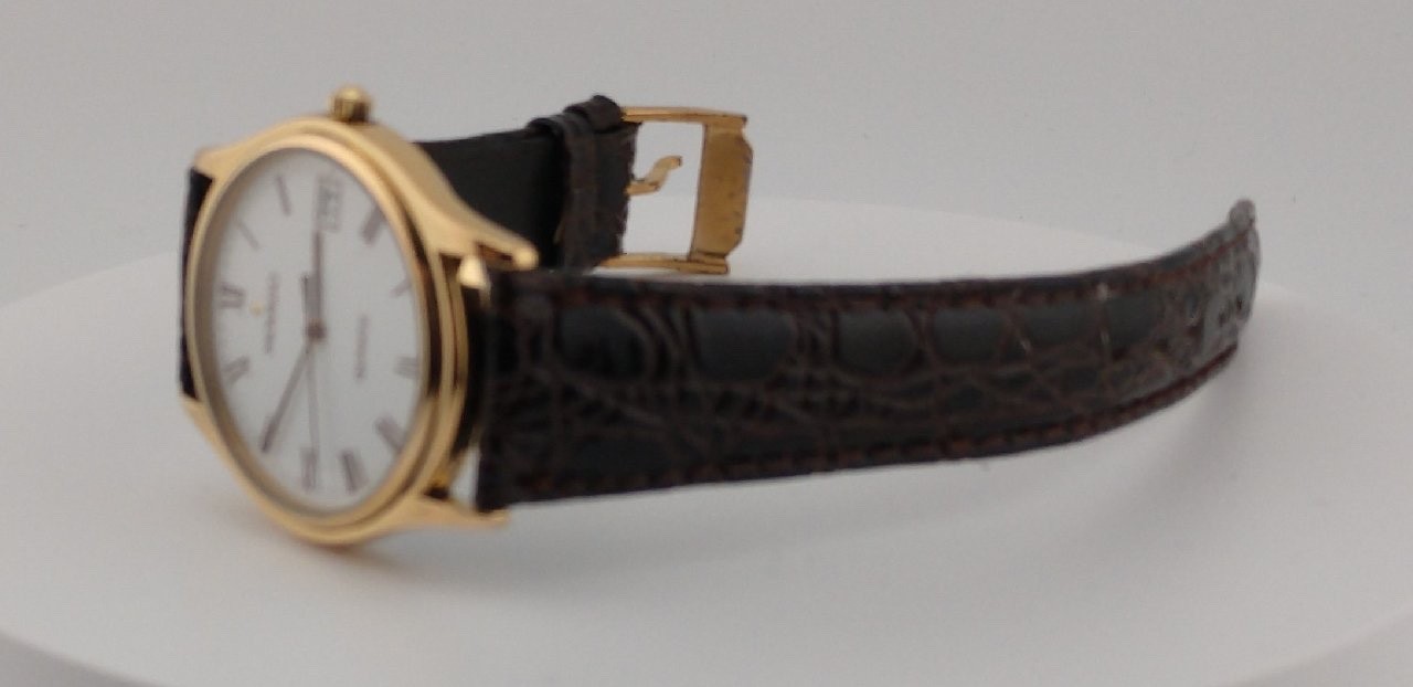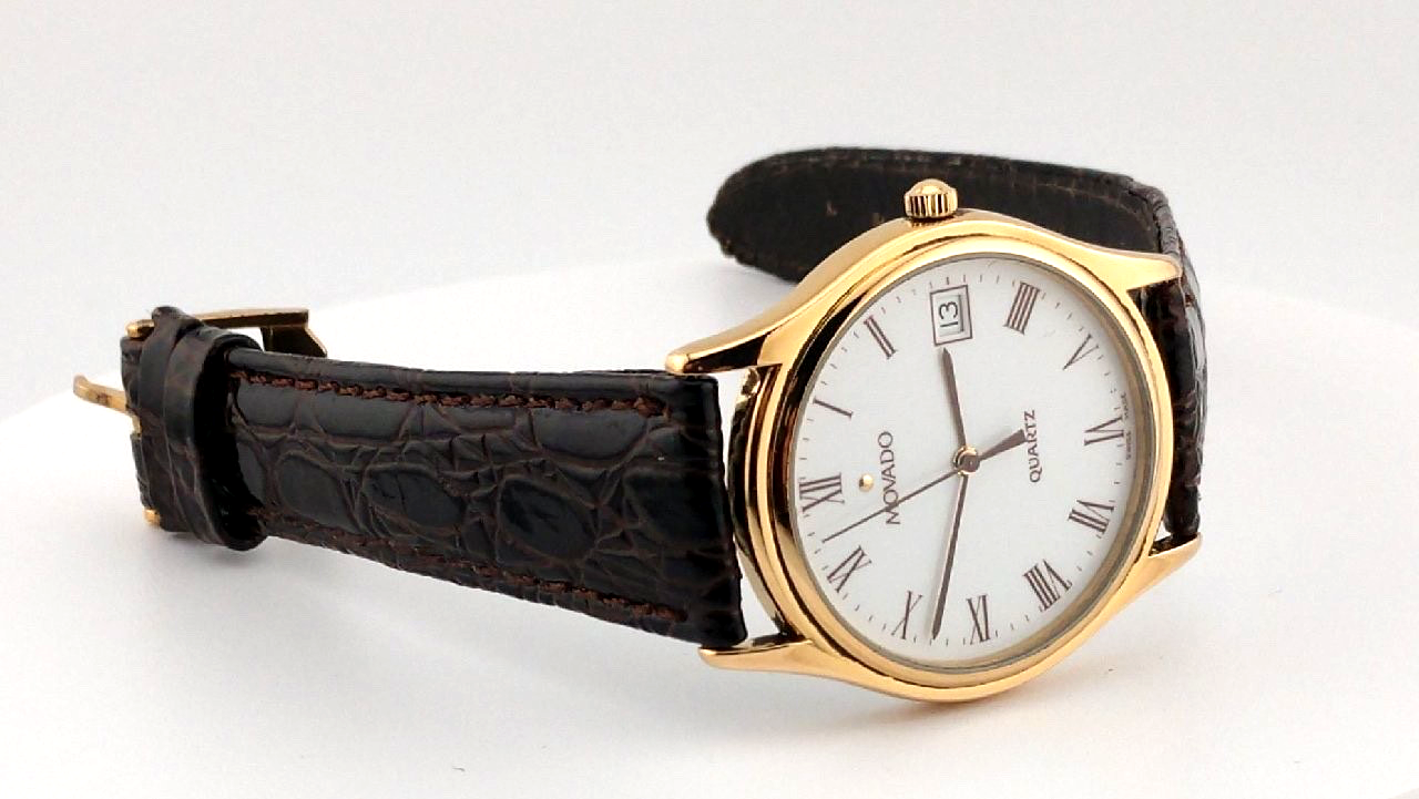 grandpa don’s mostly movados Make/Model/Serial Number: Vintage Movado 18k Gold Plate over Stainless Steel Men's Watch W/Roman Numeral Hour Markers, Date Inset at 3 o'clock, Sweep Second Hand, Minute Stick Indices/Model #87.52.891 Description: This Vintage MOVADO Men’s Two-Toned 18k Gold Plate/Stainless Steel Roman Numeral Stainless Steel Quartz Watch is a stylish and elegant wristwatch suitable for both casual or formal wear. With a classic design featuring brown Roman numerals against a white dial is classic and elegant at the same time. Add the date inset at 3 o’clock with the Movado name and traditional gold “sun” at 12 o’clock. Add a brushed stainless steel screwdown caseback and you have a very unique and special watch. Set against the gold bezel and crown, a brown genuine leather 19mm strap in an alligator pattern with, what else can I add? This watch exudes a timeless and sophisticated appeal. The Swiss quartz movement ensures accurate timekeeping, making it a practical and reliable accessory for any occasion. Perfect for those who appreciate quality craftsmanship and a blend of traditional and modern design elements, this Movado watch is a versatile and chic choice for that special individual. In addition to the watch, this package includes a Presentation/Storage Box. GrandPa Don's Rating: 4 This watch would deserve a 5 rating if not for a few light scratches in the edges of the crystal – the attached band does show some stiffness that should work out with wear – if not I will send a new leather band upon request at no additional charge. Mechanical sound and fully operational as-well-as aesthetically pleasing this watch will make an excellent addition to any gentleman’s collection. Battery changed in May 2025 which should bring years of trouble free service. Item Material Details: Metal 18k Gold Plated Stainless Steel The watch you receive is refurbished to the best possible condition and assigned a present condition number from 3-5 (see below). The battery in your quartz watch is guaranteed to have been replaced within the past 6 months. All of our watches are shipped in a display/storage box that in most cases, corresponds to the brand. Notes: è Unfortunately, due to concern with the high levels of fraud, orders through Ebay that have non-matching shipping/billing address will be cancelled. è Pictures detail the watch and box you will receive. At no additional charge, you will receive either a new or historically accurate Movado box/presentation case. è Where possible, I have added links to increase the size of the band to fit a larger wrist. è No other accessories are included other than what is shown in photos. Please closely access photos for condition and message us with ANY QUESTIONS prior to purchase. Shipping: è SHIPPING & INSURANCE ARE PAID FOR BY THE BUYER è BILLING AND SHIPPING ADDRESS MUST MATCH OR WE CAN NOT SHIP OUT ITEMS è All sales over $300 are insured and require a signature upon delivery è Ships within the continental US ONLY, through USPS Priority Mail, USPS Ground Advantage OR UPS Ground. è Under most circumstances, your item will be shipped within one (1) business day. USPS PRIORITY MAIL should be delivered within 1-3 business days, Ground Advantage and UPS within 5 business days Returns: è I WILL ACCEPT RETURNS UNDER CERTAIN CONDITIONS: Five (5) day return IF DEFECTIVE and returned in same condition as received. Unfortunately, I do not accept a return on items that do not meet your needs – please make sure the watch or other item(s) you purchase meet your needs and expectations before you make the purchase. Rating System: Keep in mind, light scratching is indicative to stainless steel – and can even be seen on a new watch when using a jeweler’s loop. If you are looking for it, you will see it. Using a jeweler’s loop and using the naked eye give two completely different visualizations. Refurbished watches are not perfect – but should look exceptionally pleasing to the naked eye – thus the rating system that I use: è A Rating of Three (3): some scratching will be visible to the naked eye. For example, deep scratches on the caseback are usually caused by an individual attempting to change a battery without the proper tools or experience. Although lightened through reconditioning, excising these completely could compromise the integrity of the case. è A Rating of Four (4): light scratching on the band and/or caseback may be visible to the new owner but most likely not to others. A condition just slightly below a four plus. è A Rating of Four-Plus (4+): minimal light scratching, if any, on the band or caseback may be present but likely not seen to the naked eye. Watches given this rating have been very lightly used and/or taken very good care by the previous owner. Could easily pass as a new watch. è A Rating of Five (5): The watch is either brand new and never been worn or lightly used but reconditioned with excellent results – any defects and/or scratches have been removed. Please Note: Although any distinction between a new watch and a reconditioned watch with a 5 rating is difficult to discern by the naked eye, we will always indicate if a five is a new or a reconditioned watch. Rest assured, I will never sell you a reconditioned watch as a new, unworn watch. About Us: Grandpa Don has been in business since 2001and has periodically sold refurbished watches on Ebay since that time. I have more than 25 years experience working on Movado watches and still handle the beautification and refurbishing of the watch you purchase – although I am now a Great GrandPa and do leave the intricate movement work to an expert Movado watch repair business located in Rancho Cucamonga, CA. My primary mission has always been the satisfaction of my customers – many of which are repeat especially during the holiday season. I pride myself on honesty and integrity – when you purchase a Movado watch, or any other brand for that matt