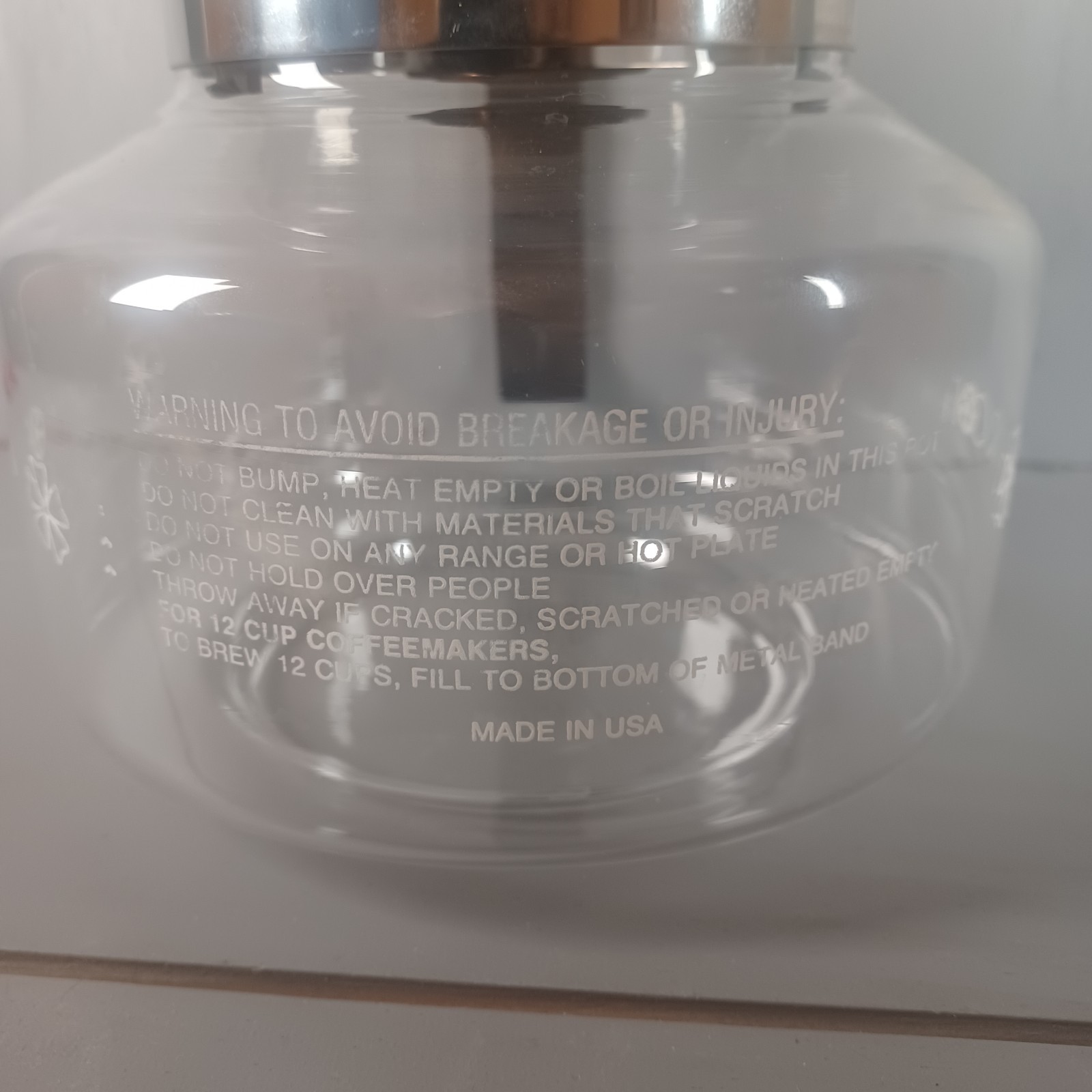Mr. Coffee 12 cup original carafe/decanter. Some of the lettering on the glass is worn off. Otherwise in good condition. Hard to find this style carafe. Whenever possible, we will use recycled shipping materials. Including boxes and packing materials. This helps cut down on landfill waste and saves everybody money by enabling us to keep our prices a little lower. Don't worry, we won't send your package in a Pop Tart or Cereal box. We use sturdy shipping boxes.