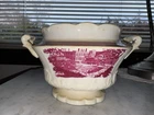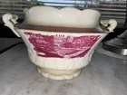 Beautiful vintage mulberry/burgundy transferware tea service set featuring a classic scenic design. This coordinated set includes a teapot, sugar bowl with lid, and creamer — the essential pieces of a traditional tea service. The rich mulberry color and pastoral scene make this set perfect for display, entertaining, or vintage décor. A wonderful choice for collectors of transferware or anyone styling an English or cottagecore interior. Set Includes: Teapot with lid Sugar bowl with lid Creamer Details: Pattern: Mulberry / burgundy scenic transferware Era: Late 19th–early 20th century (approx.) Origin: English or European style Material: Glazed ceramic / earthenware Condition: Good vintage condition Age-related wear and glaze variation consistent with age No cracks noted Please review photos carefully Note: This set is also listed as individual pieces. If an item sells separately, this listing will be updated accordingly.