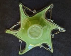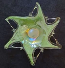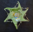 Add a touch of mid-century modern to your decor with this vintage 16" starfish murano art glass bowl trinket dish. Handmade in Italy, this bowl features a unique star shape and a beautiful green color that will catch the eye of any guest. The bowl is made of blown glass and has a depth of 3". Very good pre-owned condition. Sold as is. NO CHIPS. UPS SHIPPING