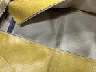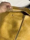 This is a vintage American Tourister garment bag in mustard yellow. It features a clothing compartment and is made of faux leather or possibly real leather. Not super sure. The bag is designed for carry-on use and has a size of 37". Suitable for both men and women, this stylish garment bag is a practical and fashionable choice for travel. Retro traveler. Zip and button snap closure.
