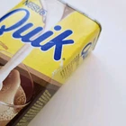This listing is for a vintage Nestle Quik container. This is an 8 ounce container that measures about 5" tall and 3" wide. It is made of cardboard walls with a tin top and bottom. The back side features the Quik rabbit and a geography state game puzzle. The container is empty and in used condition being sold as a decorative collectible only. It is in decent condition with a few small marks in the artwork and a tiny dent on the right front corner near the bottom of the "K" in Quik. The top and the lid has some rust. See pics for more details.