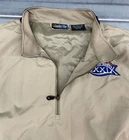 Vintage NFL Super Bowl 39 Windbreaker Jacket Mens XL Tan Navy Quarter Zip Armpit to armpit approx : 28 Inches Flat Lay Length approx : 27.5 Inches Front Flat Lay Very good condition, please see pic for details and measurements