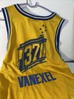 This vintage Nike jersey features Nick Van Exel's number 37 from his time with the Golden State Warriors. The yellow jersey is a size 2XL and made for men. It is an officially licensed product and was manufactured in Korea, Republic of. The jersey is perfect for fans of the National Basketball Association (NBA) and collectors of sports memorabilia. It is a great way to show support for the Golden State Warriors and nickname "The City" on game day. This item is a must-have for any basketball enthusiast.