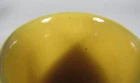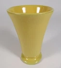 Description: This vintage pottery vase is approx.. 5 ¾” high x 3 ¾” widest point. It is glazed in a bright yellow over red clay. The piece is unmarked. There is a very tight line at the top rim into the interior approx.. 2” long and a couple of firing pops. Please view and zoom all photos.