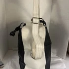 This is a vintage New York large vinyl carry-on bag manufactured by Airline Textile Manufacturing Company. It features a classic design and ample storage space for travel essentials. The bag is durable and ideal for short trips or as a carry-on for flights. There are signs of normal use . With a few scuff marks and a tiny tear that can be seen in the second to last picture.