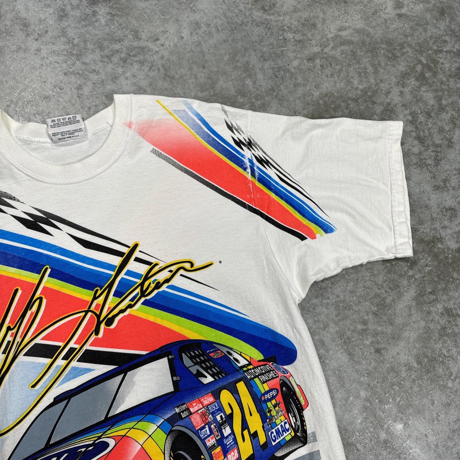 Vintage NASCAR AOP shirt mens Large Jeff Gordan all over print Racing 90s RARE Please check the measurements in the photos in order to gurantee correct fit of the clothing item! the measurements tend to be located at the end of the set of photos! thanks! Our customers are always our first priority here at MJTvintage! if you ever have any concerns please contact us we typically respond very promptly! if there is for any reason your not happy with a purchase don't leave a bad review just contact us and we will be happy to accomodate any issues you had, we believe in going the extra mile for our customers!! lastly, you are always the top priority as the customer and we thank you for your support! Contact us We can be contacted at any time through eBay messages if you have any questions, comments or product requests. We will respond to you within 24 hours and do our best to help you out! We encourage our customers to contact us with any questions or concerns! We'd like to be sure you are completely satisfied with your purchase. Returns For our Buyers Convienience we offer free returns! we do though stringly discourage returns for the item not fitting as we include detailed measurements in our listings so please try to be respectful of that, thanks! Shipping All packages are shipped next day 100% of the time except if purchased on the weekend they go out on monday morning! we pride ourselves on our fast shipping and hold true to it always! Disclaimer most of the items we sell are vintage (20 years & older), therefore some of them might have minor flaws that are caught in the pictures but we try our hardest to describe and picture any flaws! Free eBay listing template designed by © dewiso.com .