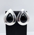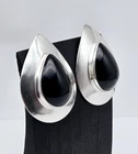HomeVintage Native American 'M' Sterling Silver & Onyx Inlay Modern Earrings - 14.0g