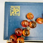 This authentic collectable natural amber beads necklace from the Soviet era is a unique piece of jewelry that will surely catch anyone's attention. The rough-shaped, polished amber beads are strung together to create a stunning 30-inch long necklace that hangs beautifully around the neck. The orange-colored amber beads are natural and have not been enhanced in any way. They are from the Baltic region and were crafted by the Daile Klaipeda Factory in 1960s with original card-box. This rare necklace is a great addition to any jewelry collection and is perfect for those who love vintage pieces. On the surface of the amber beads there are some spots and traces of natural origin, which only confirms the originality and uniqueness of these beads. There are my other items... https://www.ebay.com/usr/universeofjewelry