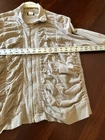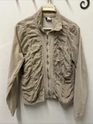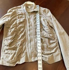 Elevate your style with this vintage Navi women's jacket. The tan corduroy material is perfect for any occasion, from casual outings to parties or even workwear. The jacket features a full zip closure with ruched styling and long sleeves.This lightweight jacket is perfect for all seasons, whether it's winter, summer, fall or spring. It's lined with unlined making it comfortable to wear in any weather. The jacket is hand wash only and has a relaxed fit, making it easy to wear for any body type. Don't miss out on this unique piece that will surely make a statement in your wardrobe.