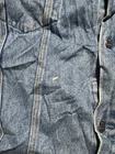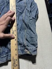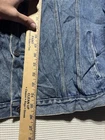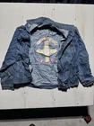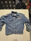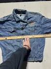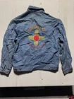 This vintage denim jacket in size large features a biker style with an enchanting USA theme. Made in Hong Kong, the jacket showcases a Mexican influence in its design. Crafted from cotton denim fabric, this blue jacket is ideal for men looking to make a statement with a unique and culturally inspired piece.