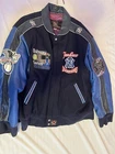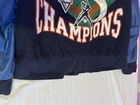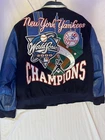Please check the pictures of the product to get a understanding of the quality Crafted for the dedicated fan, this vintage New York Yankees jacket by Jeff Hamilton is a standout piece commemorating the 2000 Subway Series. The jacket is in very good condition, sized XL, recently dry cleaned. It features a sleek blue design, proudly made in the United States, and is officially licensed by Major League Baseball. It's a must-have for collectors and enthusiasts of the sport, celebrating a memorable World Series event.Designed to showcase team spirit, this men's jacket is adorned with vibrant graphics and colors synonymous with the New York Yankees. It represents not just a piece of sports history but also a timeless tribute to one of baseball's most storied franchises. Whether you're at the game or out on the town, this jacket is sure to make a statement.
