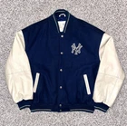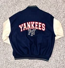 In excellent pre-owned condition lightly worn. Has some wear such as a small black mark on sleeve as shown in photos but no other serious flaws. Men’s size XL and fits true to size. Features leather Yankees logo embroidery patch on front and cool leather spellout embroidery on backside. Has leather sleeves. 100% authentic. Sold as is.