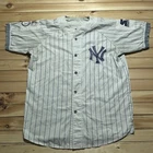 Vintage New York Yankees Starter Pin Stripe White Baseball Jersey Size Large