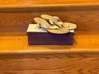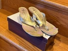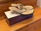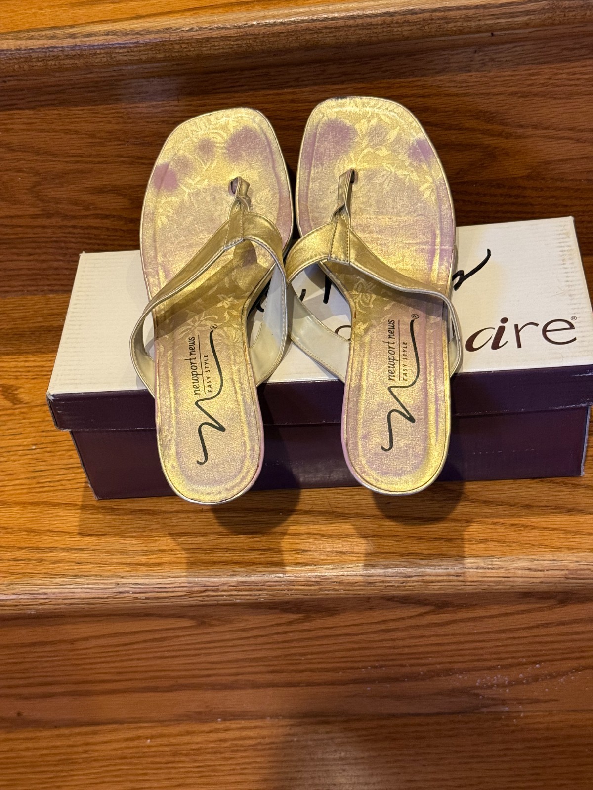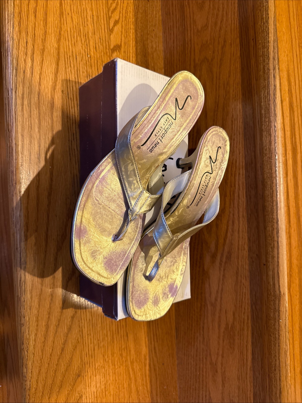 Vintage Newport News Easy Style Gold Floral Kitten Heel Thong Sandals Y2K Original Box Size 8.5 Designed with comfort and style in mind, the low kitten heel offers graceful lift without sacrificing all-day wearability, making them perfect for weddings, cocktail parties, summer vacations, or simply dressing up a favorite pair of jeans. The slip-on thong design provides easy wear, while the open toe keeps the look light and feminine. Newport News was a beloved catalog brand known for fashionable, flattering footwear, and this Easy Style line remains a favorite among collectors and Y2K fashion lovers. These sandals come with the original box included, adding collectible value and ensuring safer shipping. Whether you’re channeling coastal grandma vibes, embracing vintage Y2K fashion, or looking for an elegant low-heel option for special occasions, this pair is a rare and stylish find. Condition: Pre-owned. Very good condition. Minor wear on the insoles as shown in photos. Plenty of life left in the tread and heel tips. Clean, well cared for, and ready to wear. Item Details: Brand: Newport News Product Line: Easy Style Style: Kitten Heel Thong / Flip-Flop Dress Sandals Color: Metallic Gold / Champagne Heel Height: Approx. 1.5–2 inches (Kitten Heel) Toe: Open Toe Thong Closure: Slip-On Features: Floral patterned cushioned insole, lightweight design, comfortable low heel Era: Late 1990s–Early 2000s Y2K Occasions: Wedding guest, party, cocktail, vacation, summer outings, formal casual Original Box: Included Size: [Insert Size] Why You’ll Love Them: Elegant yet comfortable low kitten heel Chic metallic gold with vintage floral detail Authentic Y2K Newport News Easy Style design Versatile for both casual and dressy outfits Original box included for collectors and safe shipping Perfect for Y2K vintage lovers, wedding guests, coastal grandma aesthetics, or anyone looking for a stylish, comfortable low-heel sandal with timeless charm. Required Item Specifics Brand: Newport News US Shoe Size: 8.5 Style: Thong Department: Women Color: Gold Upper Material: Faux Leather (Patent Faux Leather) Suggested / Additional Item Specifics AU Shoe Size: 8.5 UK Shoe Size: 6 EU Shoe Size: 39 Heel Style: Kitten Heel Height: Low (1.5–2 in) Theme: Metal Occasion: Casual, Party/Cocktail, Wedding Guest, Formal Season: Summer, Spring, Fall Closure: Slip On Pattern: Floral Features: Cushioned Insole, Lightweight, Comfortable, Low Heel Model: Easy Style Accents: Floral Pattern Customized: No Personalize: No Vintage: Yes Character: None UPC: Does Not Apply