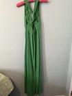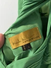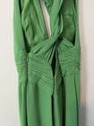 This vintage Nicole Miller gown is a stunning piece crafted from green silk chiffon, featuring a sleeveless design with a strappy sleeve style and a V-neckline. The dress has a long length, perfect for formal occasions, and is adorned with a zipper closure and zipper accents, adding a touch of 90s vintage charm. The A-line silhouette and ball gown style make it a timeless and classic piece, suitable for a variety of seasons from winter to summer. Made for women in size 0, this elegant gown exudes luxury and sophistication.