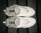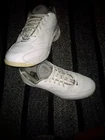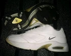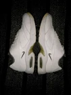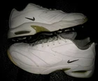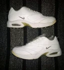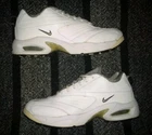 Step onto the green with confidence in these vintage Nike Air Max Golf Shoes, a blend of classic style and modern comfort. Designed specifically for women with a size 10 fit, these shoes boast a pristine white leather upper accented by a tasteful gray cuff. The timeless low-top sneaker silhouette is enhanced by the iconic Nike Air Max cushioning, ensuring maximum comfort and support throughout your round. The shoes are well-suited for a range of seasons, ready to tackle both the chill of winter and the warmth of summer. They come equipped with a durable synthetic outsole and a cushioning foam insole, providing stability and breathability. With an embroidered accent that adds a touch of elegance to the design, these athletic shoes are perfect for any activewear occasion, making them a versatile choice for both on and off the course.