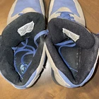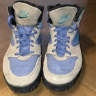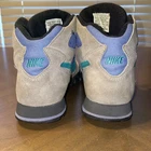 The product is a pair of Vintage Nike Caldera Hiking Boots for women in a size 9. These boots feature a stylish combination of grey, blue, and green suede material. With a hiking style and Nike branding, they offer a blend of fashion and functionality for outdoor activities. The model number provided is 940709-IB, adding a unique touch to these vintage Nike boots. *2 small spots on one of the shoes.. see picture