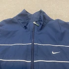 Character: Nike Color: Blue Insulation Material: Polyester Performance/Activity: Basketball, Dance, Running & Jogging, Track & Field Model: Nike Team Vintage: Yes Features: All Seasons, Full Zip Theme: 90s, Logo, Sports Style: Windbreaker Pattern: Check Type: Jacket Size Type: Regular Outer Shell Material: 100% Polyester Closure: Zip Country/Region of Manufacture: Indonesia Size: XL Fit: Regular Department: Men Occasion: Activewear, Casual Brand: Nike Sleeve Length: Long Sleeve