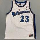 Expect Signs of Age and Wear Vintage 2000s Nike NBA Washington Wizards Michael Jordan #23 Basketball Jersey White / Dark Blue / Bronze Embroidered Logos, Stitched Name and Number Men's Size XL Pit to Pit 23 1/2" Shoulders Across 15" Shoulder to Hem 31 1/2"