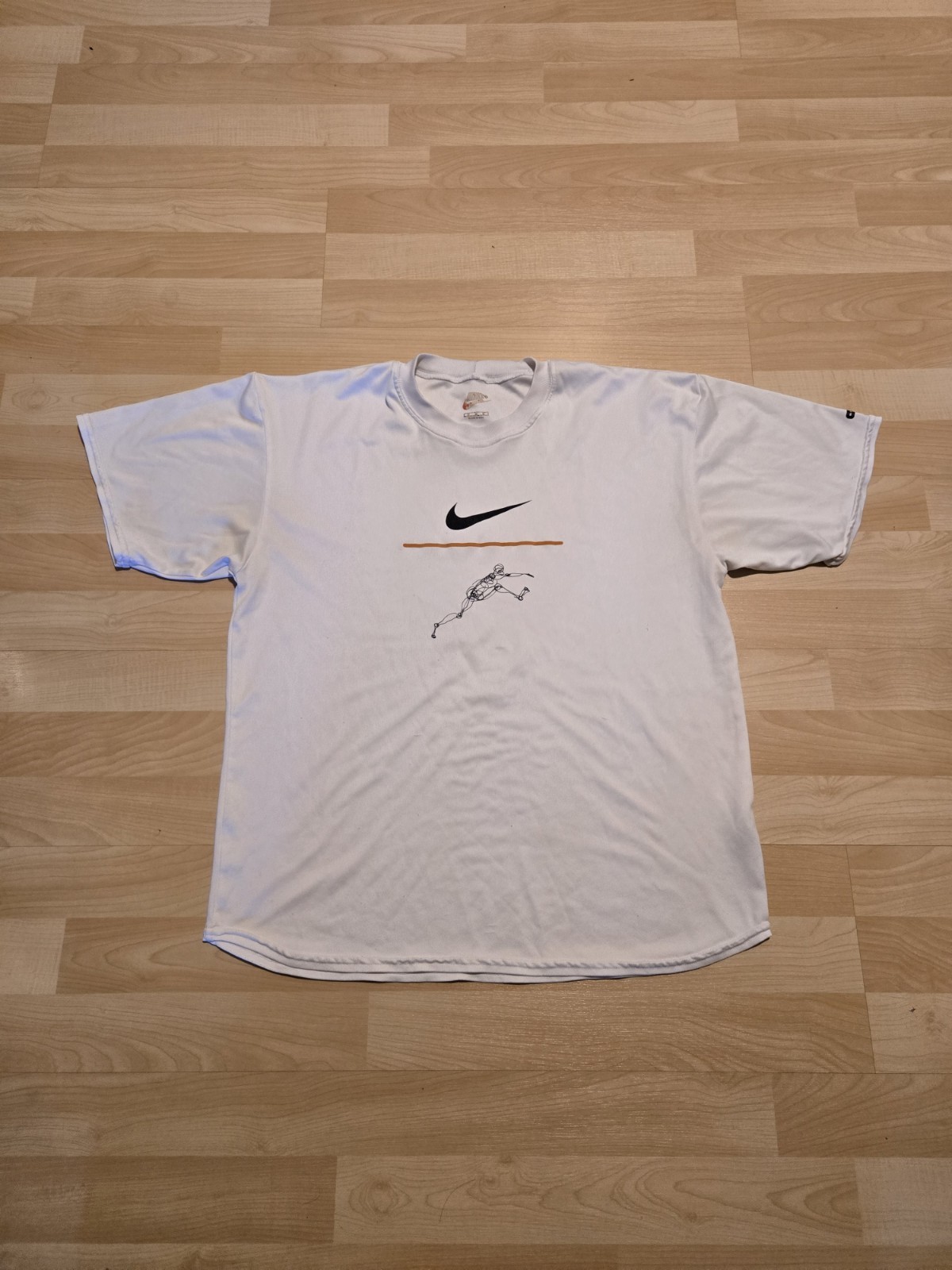 Vintage Nike running white tee with orange and black graphic Condition is good. no holes but does have some light wear. please see photos for references to any flaws listed Size is a medium Measurements are pit to pit 20 inches length 26 inches Condition is 7.5/10 thank you for shopping #nike #vintage #running #gorpcore #sportswear