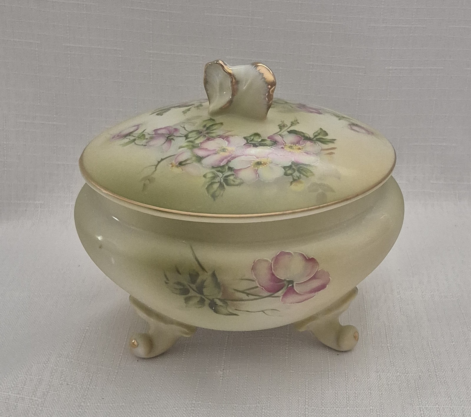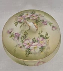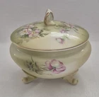 Vintage Nippon Hand Painted Porcelain Green Floral Dresser Vanity Jar. Measures 4 3/8" to the top of the lid and is 4 1/2" in diameter. Stamped Hand Painted Nippon Japan on the bottom. Excellent clean condition. There are no chips, cracks or wear to the finish. A touch of beauty to your vanity or dresser. Free Shipping.. I normally ship Same day or Next day depending on the time of purchase. All of my items are wrapped with care to avoid damage during transit. I stand by all of the items that I sell so bid with confidence. Method of Payment Accepted is Paypal Connecticut Residents Add 6.25% Sales Tax. Payment is due 5 Days of Auction close. Shipping is done Monday through Friday