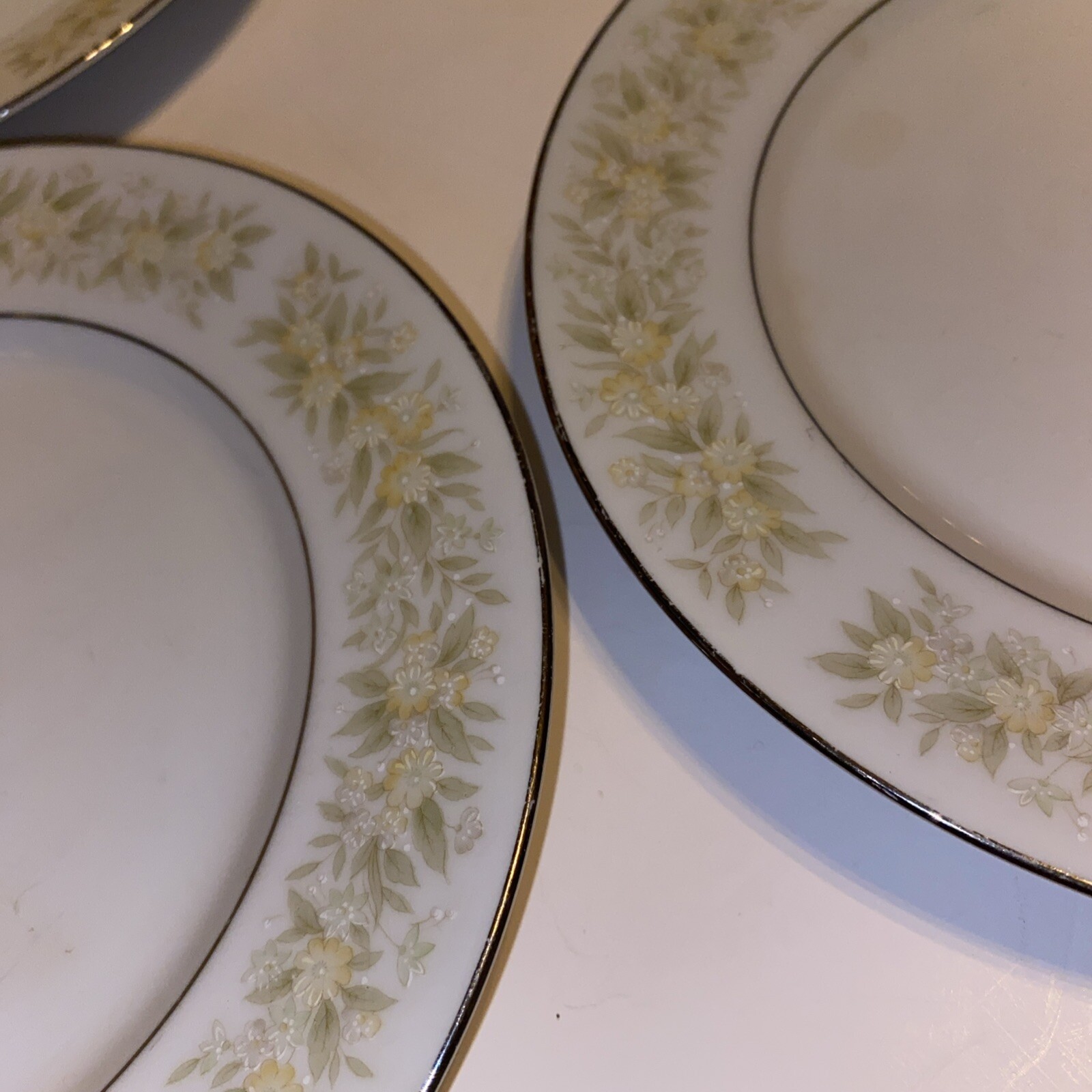 Vintage Nitto Greenfield Set of 5 Bread Salad Plates Yellow White Floral Pattern #4908 Midcentury Tableware