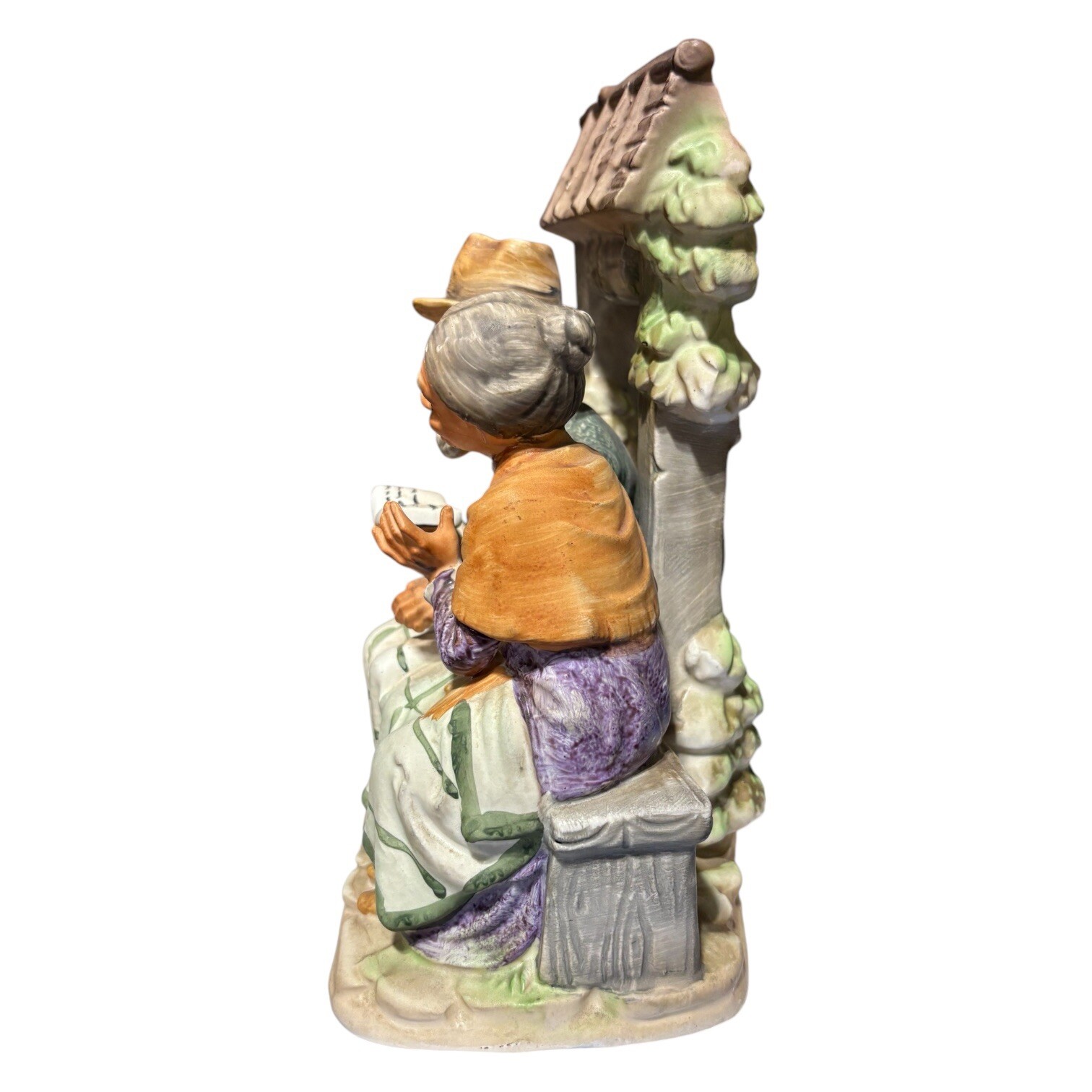 Vintage Figurine - Norleans Japan - Old Couple - Ceramic Bisque - Well - 8.25" Details: -Ceramic Figurine -Hand-painted -Footed -Multi-colored -'Norleans Japan' sticker on base Measurements: -Length: Approximately 6 1/4" inches -Width: Approximately 4 1/2" inches -Height: Approximately 8 1/4" inches Condition: -Good, pre-owned condition. Minimal external surface-wear.