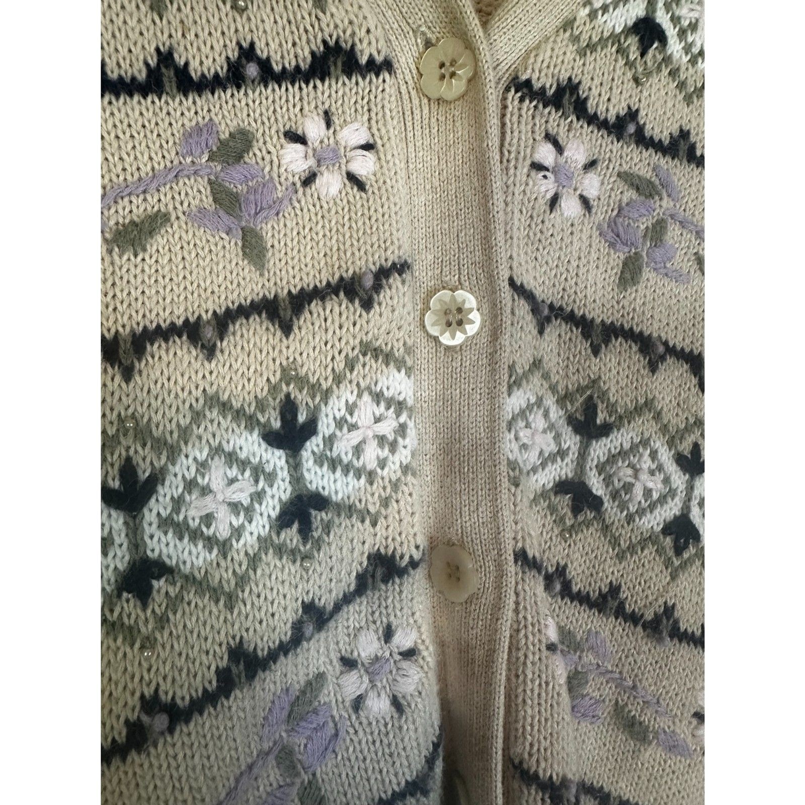 ******a couple of beads are missing***** Vintage Northern Reflections sweater vest with floral button front closure 🌿 Cozy knit made of ramie/cotton blend with a soft cottagecore/gardencore vibe. Perfect for layering over blouses or dresses for that rustic, vintage look. Size L. #VintageStyle #Cottagecore #Gardencore #RetroVest pit to pit: 21" length: 26"