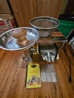 This is in great functional shape, while IT HAS BEEN DENTED in shipment. The Pictures show dents that may be able to be corrected. Why the price is so low Very clean and all parts included. The motor is very calm with no friction and purrs with no signs of aged bearings. The juicer plate usually sits in the middle position after the press lever is released. This is normal from my experiences with norwalks. It requires a little hand pressure then it will lower into position. Maybe a little hydraulic lubricant would allow it to glide back to the bottom position. The 265 model is great, while it's RPM rotations per minute is just not as high as new models while it will grind anything you need macerated then cold pressed. Sold As Is All screens, book, tray, pieces, ... let me know if you have any questions. This vintage Norwalk 265 hydraulic food juicer is a heavy-duty appliance that can handle citrus, vegetables, berries, root vegetables, and leafy vegetables with ease. Its electric power source and cold press feature make it perfect for those who want to enjoy freshly squeezed juice and smoothies at home. The juicer comes with a funnel, blades, cutter, motor base, strainer, pusher, base, and handle, making it easy to use and transport. The juicer has a wood grain finish and is made of stainless steel, ensuring its durability and longevity. It has a single speed and is perfect for those who want to create delicious and healthy juices and smoothies. This item is a great addition to any kitchen and is perfect for those who love to cook and enjoy freshly squeezed juice.