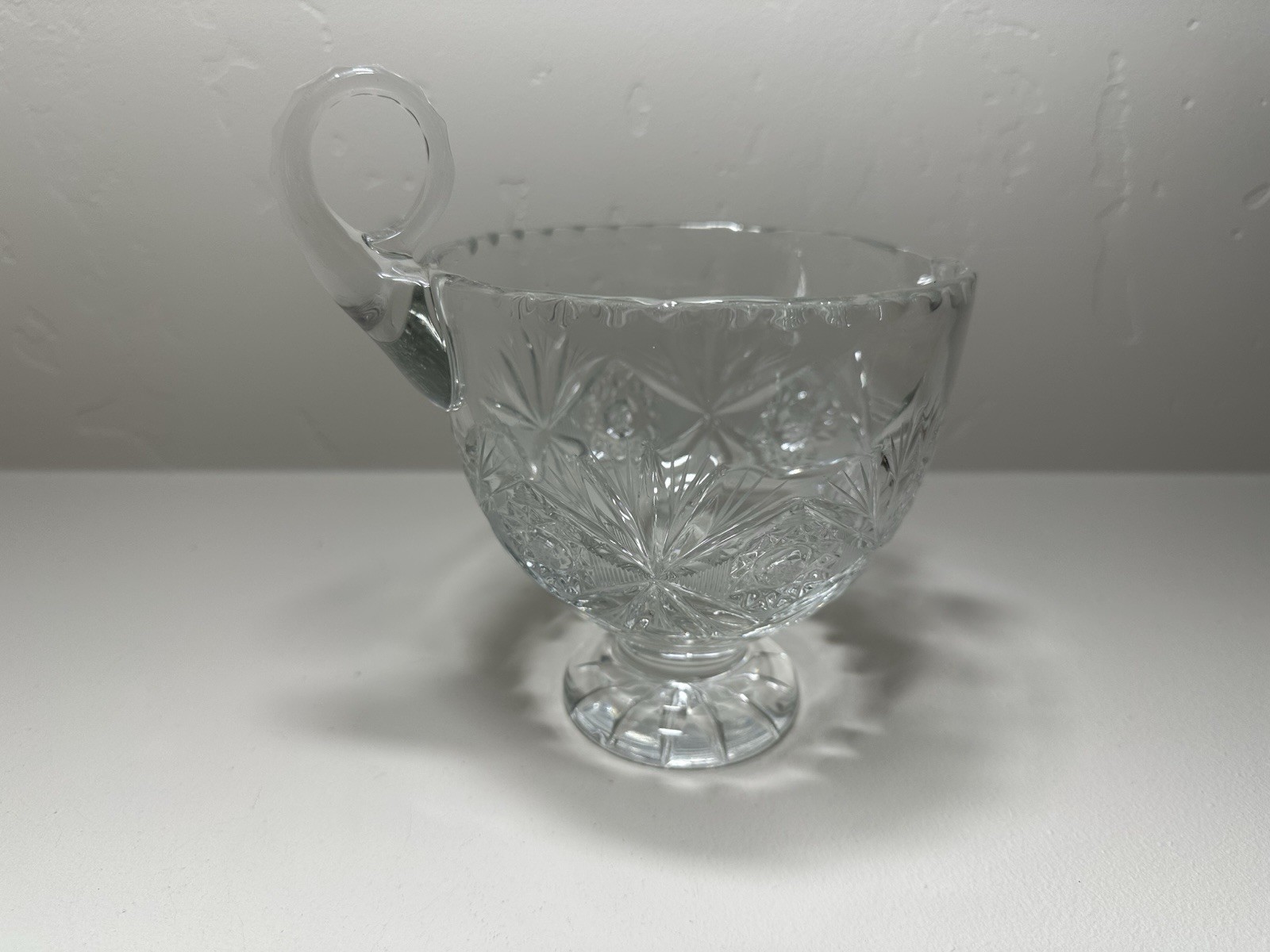 This vintage OFNAH hand cut footed lead crystal gravy dish is a stunning piece of Mid-Century Modern decor. Made in Poland, this 24% PBO crystal gravy dish exudes elegance and sophistication. Its clear color and hand-cut glassmaking technique make it a unique addition to any table setting. With its vintage original design and production style of crystal/cut glass, this dish is sure to be a conversation starter at any dining occasion.