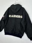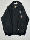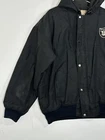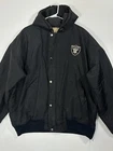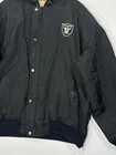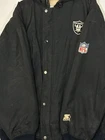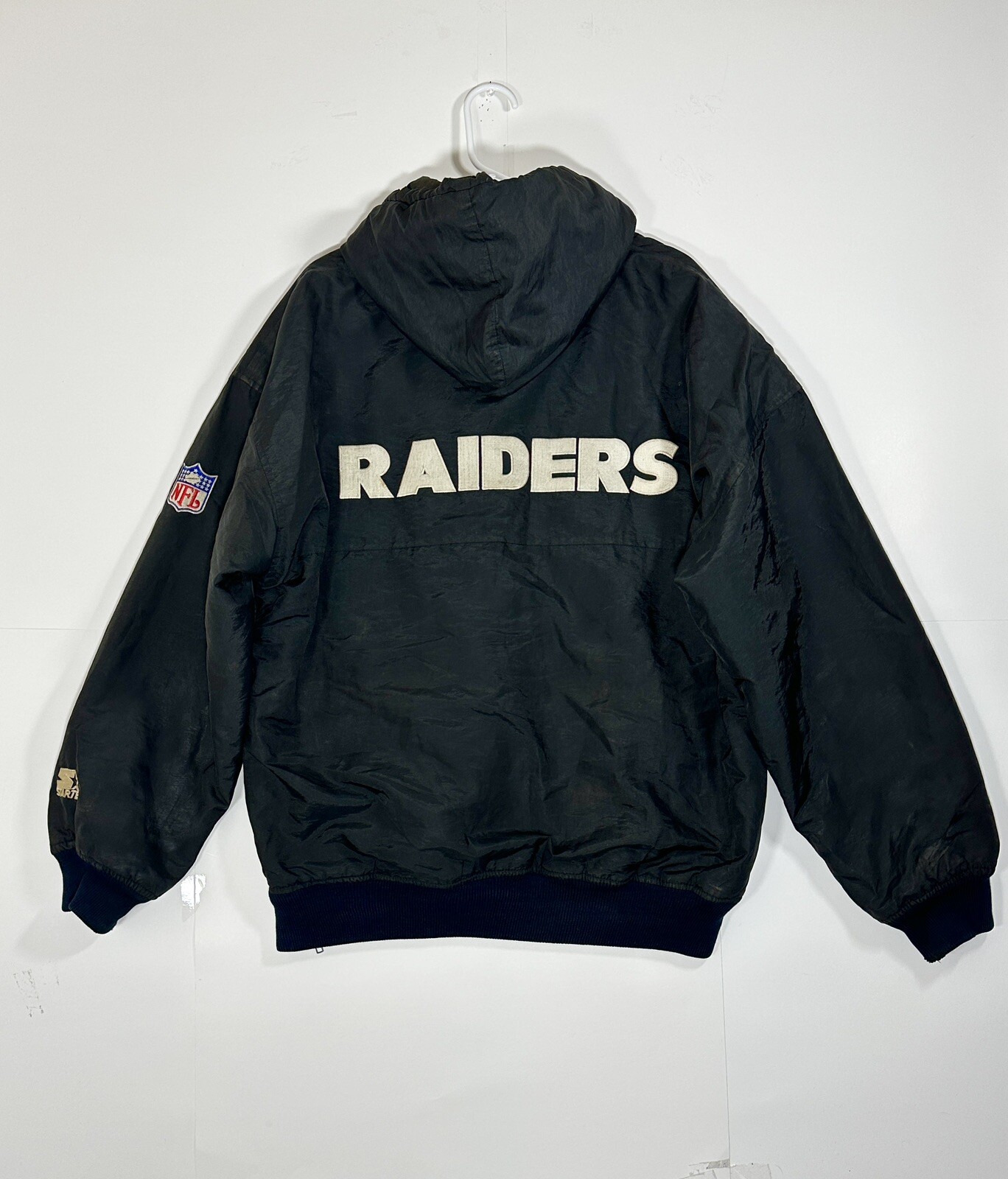 Vintage Oakland Raiders Starter Jacket Size Large Black Los Angeles NFL 1990s Distressed READ Broken zipper - Read & see photos very closely Poor - to - kinda okay condition overall - pretty distressed throughout jacket - see ALL photos very closely Jacket has mid heavy stains / marks throughout inside mostly /some on outside of jacket front - back side /sleeves - jacket has heavy signs of stress - moderate - heavy wear/tear overall - fade /discoloration throughout - damaged broken zipper - it does barley zip up if you can get it just right on both sides - however it’s barley holding on by a thread on the one side - zipper about to fully break - basically snap closure only - broken zipper - see ALL photos very closely for condition of jacket Will ship with care