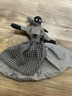 Vintage? Old Early Primitive Folk Art Cloth African American Doll Plaid Dress Toaster Cover. She sits upon a wooden covered base. Adorned with a pair of hoop earrings and matching scarf to her apron. Original “Chicken coops” hang tag attached under dress as pictured. PLEASE READ as this is BUYER’S RESPONSIBILITY I am open to offers sometimes! (I may be able to reduce price on some items so send me your BEST offer and do not ask me how low I will go).I will do the cheapest shipping to help with costs (usually first class-now USPS Ground Advantage) so if you would prefer an alternative shipping service and or speed then please reach out to me first so I can adjust the listing as appropriate and price for shipping accordingly if needed. Shipping charges are non-refundable in ANY transaction as the fee is used and consumed with the purchase of a shipping label. Unfortunately, do to slow shipment & problems with lost or damaged items in shipping, I do NOT DIRECTLY ship overseas. I DO participate in the eBay international shipping program so you will have to verify if you were shipping location is eligible. So if any return or partial reimbursement occurs with the transaction the shipping cost is NOT considered in the calculation. I will include insurance at my own digression. If a buyer wants it then they need to send a message prior to purchase so that I can adjust shipping cost if needed. In the rare event that an insurance claim has to be filed due to lost or broken item, buyer needs to contact me AND I will need pictures of ALL sides of the item AS WELL as all sides of the shipping box and packing material. DO NOT THROW ANYTHING AWAY. IF YOU DO OR CANNOT PROVIDE THE PICTURES I NEED TO FILE A CLAIM THEN YOU ARE AGREEING BY PURCHASING THIS ITEM(S) YOU ARE NOT ELIGIBLE FOR ANY REFUND /reimbursement ETC. I will have pictures/video of what everything looks like upon shipping but would need pictures as it was received. Please note that if NEW damage to the item occurs in shipping to notify me immediately. IF an item in a listing describes presence of damage or that it was repaired and is disclosed, then buyer upon purchasing is acknowledging that I am selling AS IS. I cannot ensure that there might be damage to that SAME area in shipping or a failure of adhesive as being exposed to temperature changes during shipping occurs, and provided there is already a history of compromise to the area on the item it is always a possibility. Know it will still be packaged safely regardless, but I have had a buyer request a refund because of this issue and a need to reapply glue again to the same spot. I can NOT control the speed of delivery or any delays but will keep buyers informed if I become aware of any updates/delays as communication to me is very important. Comes from a smoke free home. Please zoom in and out on the pictures and ask for any clarification if needed FIRST before purchasing. Please review pictures as they are part of the description/detail. I have extra photos & videos of items for condition/state/functioning & reference. Please understand differences in screen resolution may cause color to vary slightly from photos. I try to be as detailed as possible as that is what I like as a buyer. All items are Sold AS IS…Items are described to the best of my ability. I like to be completely transparent and as accurate as I can in describing the items I sell as this is what I would want as a buyer and collector too. Unless an item is grossly misrepresented/ inaccurately described in the listing, all sales are final. Please do not leave negative feedback if there is a problem after you have received your item. I’d encourage you to contact me via eBay right away! It is BUYER’S responsibility to provide me with the correct shipping address upon payment as I try to ship items very quickly to get items to you soonest. Know that I recycle boxes and packing material to help the Earth. FEEDBACK: As a seller, I will be happy to leave feedback after you have received your item(s) and leave feedback for me. Okay that is all I think. Thanks! C-249