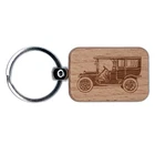 Vintage Old Timey Car Vehicle Engraved Wood Rectangle Keychain Tag Charm
