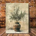 Vintage Olive Potted Branch Wall Art Canvas Unframed/Framed
