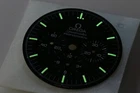 NOS Omega Speedmaster dial, C5 Short S (1991-1997) signed Singer. Main distinctive features: -Professional inscription -Short and wide S in Speedmaster -Short tritium markers, not trough the minute scale -Spaced Ts in T SWISS MADE T inscription -OMEGA with narrow E -OMEGA with G with medium length horizontal stroke -SPEEDMASTER: S and p are not joined -SPEEDMASTER: m with pointed first arch -SPEEDMASTER: r with high and short final curl Please note that the photo showing the tritium markers glowing was achieved using a UV light to show the state of conservation of the tritium markers. NOS condition with OMEGA plastic box.
