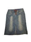 Vintage One Tuff Babe Y2K Corset Lace Up Front Slit Jean Midi Skirt Size 5/6 H39 In excellent condition Vintage One Tuff Babe Y2K Corset Lace Up Front Slit Jean Midi Skirt Size 5/6 Juniors Features 90s Y2K style vintage OTB One Tuff Babe faded medium wash denim jean skirt, corset lace up closure, mid rise, 2 small coin pockets, front slit, stretch, exposed seams, 90s vibes. Measurements laying flat waist 14" hips 18" length 21.5" Fabric cotton, spandex This is a pre-owned item that may show signs of wear. In excellent condition, no flaws.