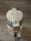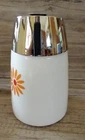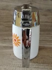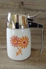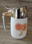 Vintage Mid Century milk glass kitchen Dripcut Server of Santa Barbara, California, in fabulous condition. Model 900, designed by Henry Keck. Holds 11 fluid ounces. Designed for syrup but works well for honey or sugar. Milk glass base jar with orange and red mid-century design Daisies and metal top. Some of these retro dispensers have plastic tops, this is not the case. This lid is metal and substantial and the chrome shiny finish is in wonderful condition with little sign of use. Glass base is in great condition also with no chips cracks or staining. Brighten up the kitchen table with this great syrup bottle. Please see all pictures as they are part of the description. Feel free to ask questions prior to bidding. I strive for five star service. My job is not done until I know you have received your item and are pleased with it by leaving positive feedback, then I will do the same. If for some reason you do not feel you can leave five stars in all categories please contact me prior to leaving feedback so we may come to a resolution where everyone is happy. A note about shipping - yes shipping has gotten expensive. I do my best to make sure the package is as small and light as possible, but will still get to you safely. I do not charge a handling fee nor do I charge for my packing materials. I measure and weigh the item before my item is listed so that your shipping quote is correct. If you would like to bid on something, but feel the shipping is too high, please contact me. Perhaps there is another way I can ship it. Please do not buy the item and then not leave five Stars based on the shipping cost, it really is beyond my control. Less than five stars in a category hurts a seller's rating. Thanks for bidding! F.nn
