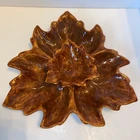 Vintage Orange Glaze Holland Mold Fall Leaf Relish Plate Dip Set Ceramic Tray