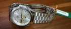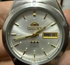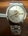 For sale is a Vintage Orient 21 Jewels Automatic Day Date Watch in a sleek silver finish with a silver dial. This stunning timepiece is New Old Stock (NOS) and retains its original charm. The 21 Jewels automatic movement ensures reliable and smooth operation. The watch may have light, barely noticeable scratches due to long-term storage, but overall, it is in excellent condition. The photos don’t do it justice – it looks absolutely gorgeous in person. The exact case size is unknown, but it appears to be a medium-sized watch suitable for men. A perfect choice for collectors or anyone who appreciates vintage Orient craftsmanship. Please check all the photos for the condition of the item before you make your purchase. ✅ Features: Automatic movement – 21 Jewels Day-Date display Original Orient bracelet Vintage NOS condition Don’t miss out on adding this elegant and rare Orient watch to your collection! Feel free to reach out for any questions!