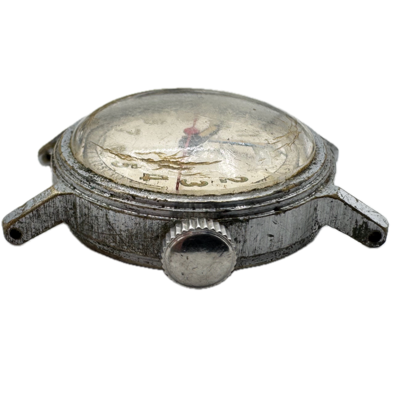 Vintage Oris Military Style Men's Mechanical Wristwatch 292 Swiss Chrome Plated Product Description Item: Wristwatch Brand: Oris Model: Military Style Movement: Mechanical Case Material: Chrome Plated Country: Swiss Gender: Men's Caliber: 292 Size: 28.5mm Product Measurements Diameter: 28.5mm Width: FALSEmm Lug Width: 16mm Lug to Lug: 36mm Thickness: 11 mm Product Condition Overall Condition: Poor, overall condition for its age. Functions: Not running but the balance complete is in good condition. Case: There is plating wear through and scratches on the case. Crystal: The crystal is cracked. Dial: The dial has scratches and discoloration. Crown: The crown is worn. Hands: There is discoloration on the hands.